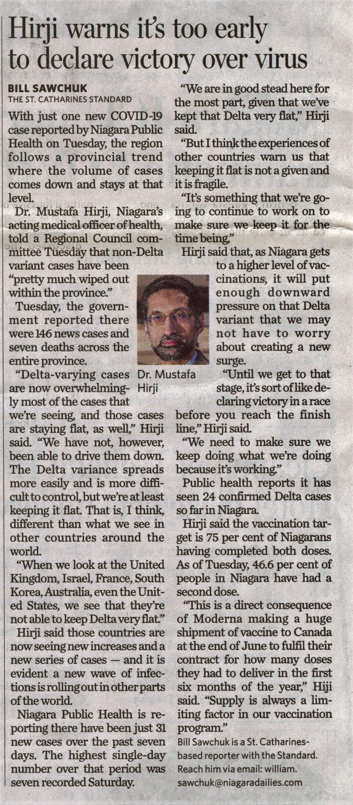 - Hirji, Mustafa Dr. / Delta variant / vaccines