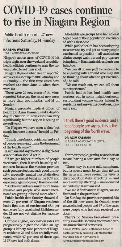 - COVID-19 cases continue to rise in Niagara Region: Public health reports 27 new infections Saturday, 14 Sunday