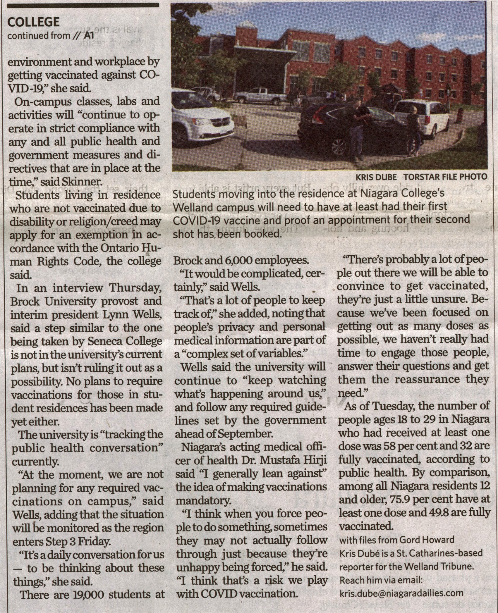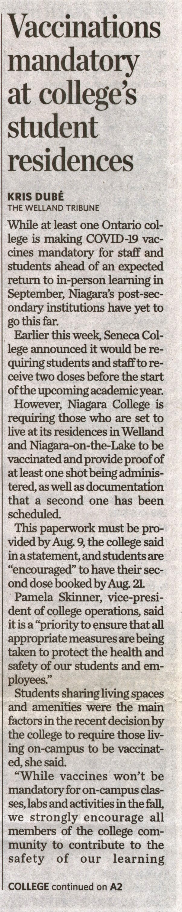 - Vaccinations mandatory at college's student residences