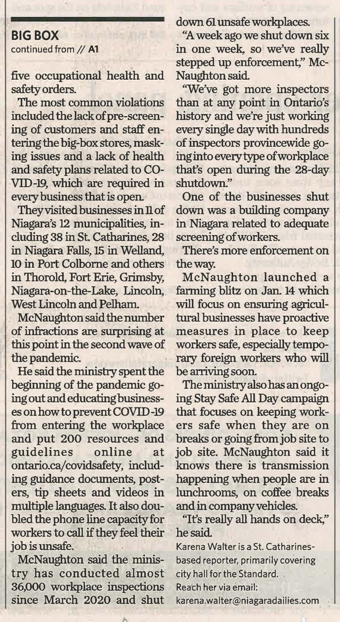 - Big-box stores, big problems : COVID-19 safety in Niagara stores 'not good enough, quite frankly'