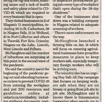 - McNaughton, Monte / COVID-19 pandemic / safety protocol inspections / Minister of labour, training and skills