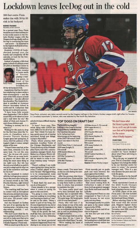 - Fimis, Pano / Niagara IceDogs / Ontario Hockey League / COVID 19 pandemic
