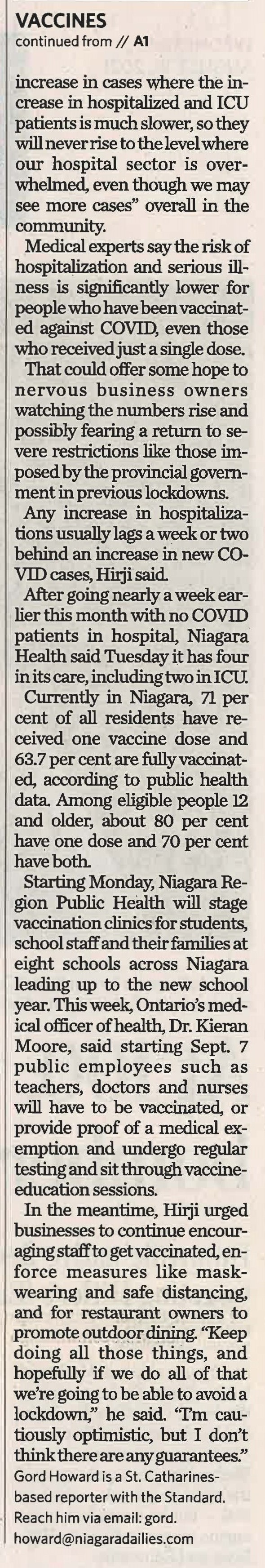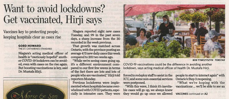 - Want to avoid lockdowns? Get vaccinated, Hirji says: Vaccines key to protecting people, keeping hospitals clear as cases rise