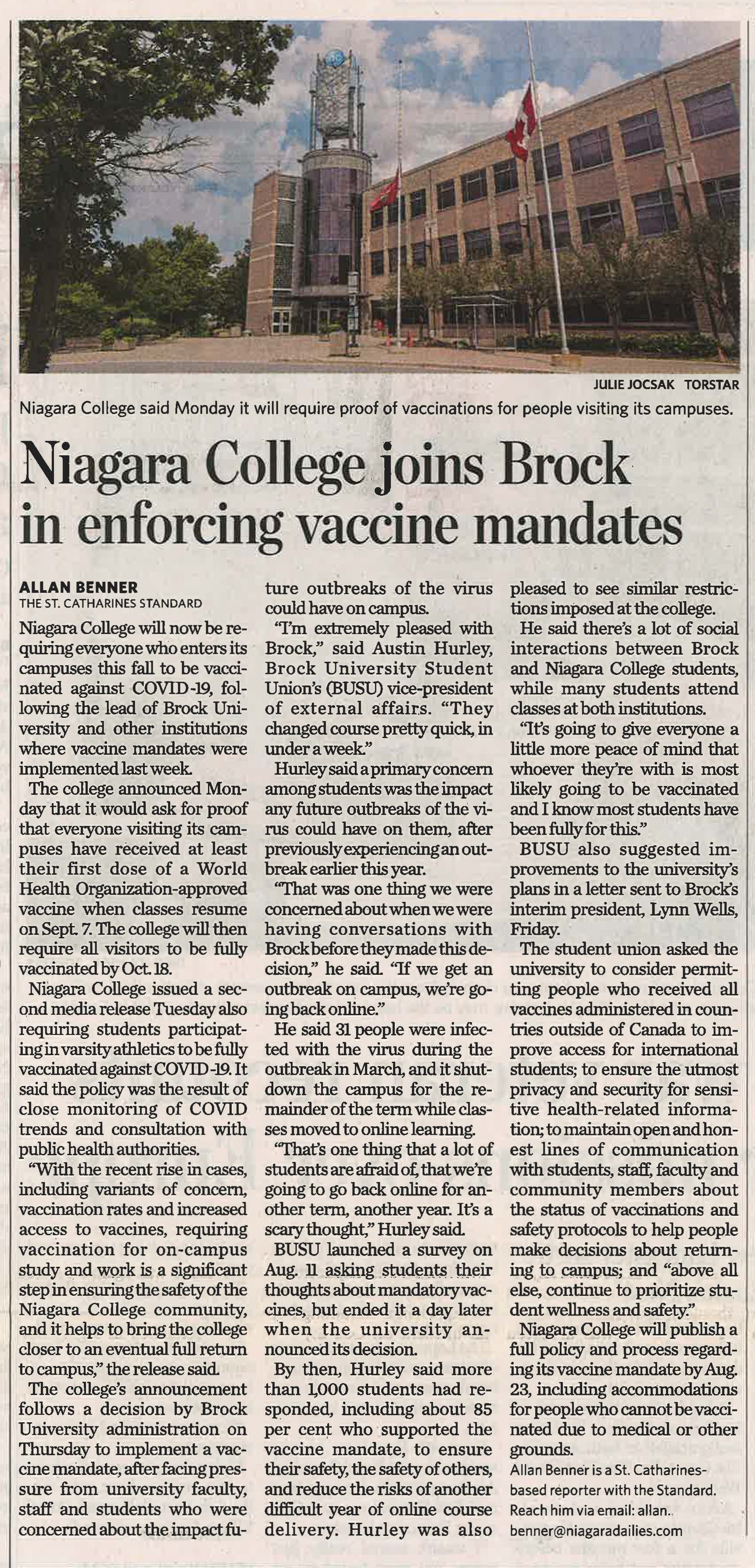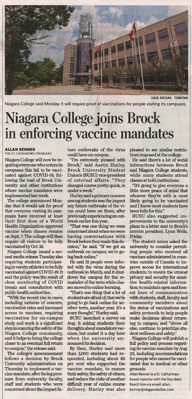 - Niagara College joins Brock in enforcing vaccine mandates