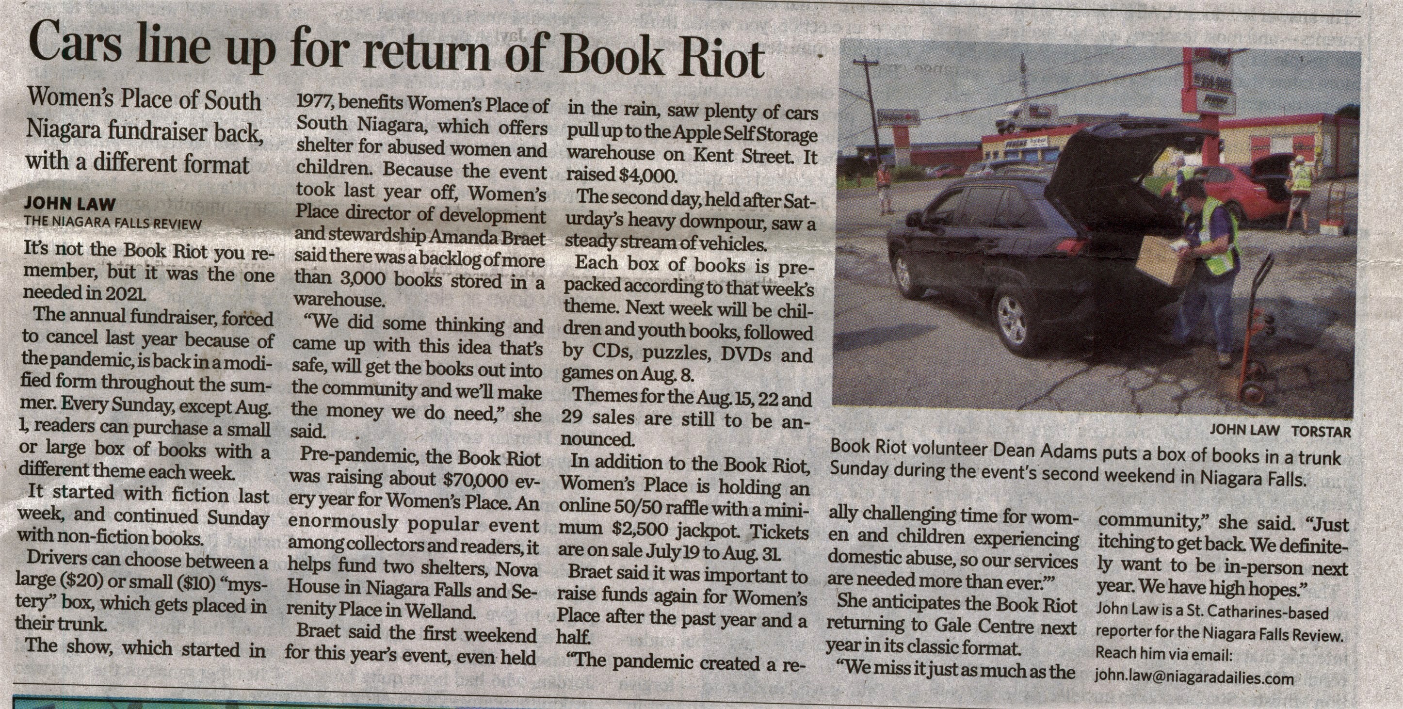 - Cars line up for return of Book Riot : Women's Place of South Niagara fundraiser back, with a different format