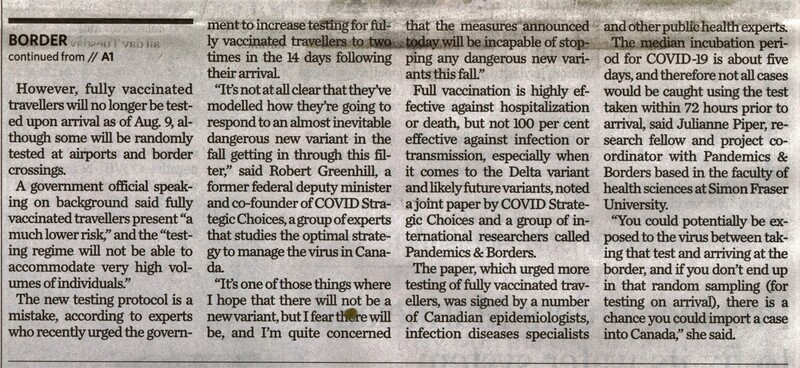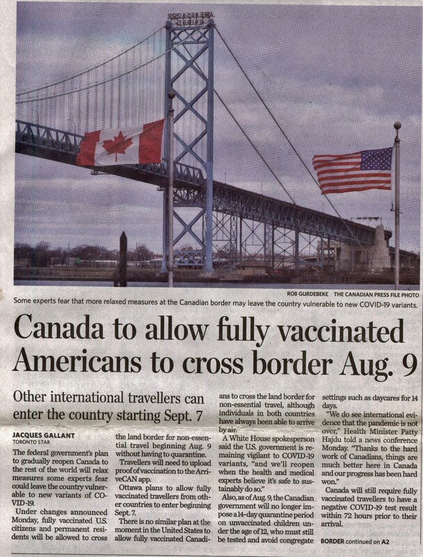 - Canada to allow fully vaccinated Americans to cross border Aug. 9 : Other international travellers can enter the country starting Sept. 7