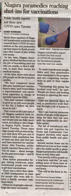 - Niagara paramedics reaching shut-ins for vaccinations : Public health reports just three new COVID cases Tuesday