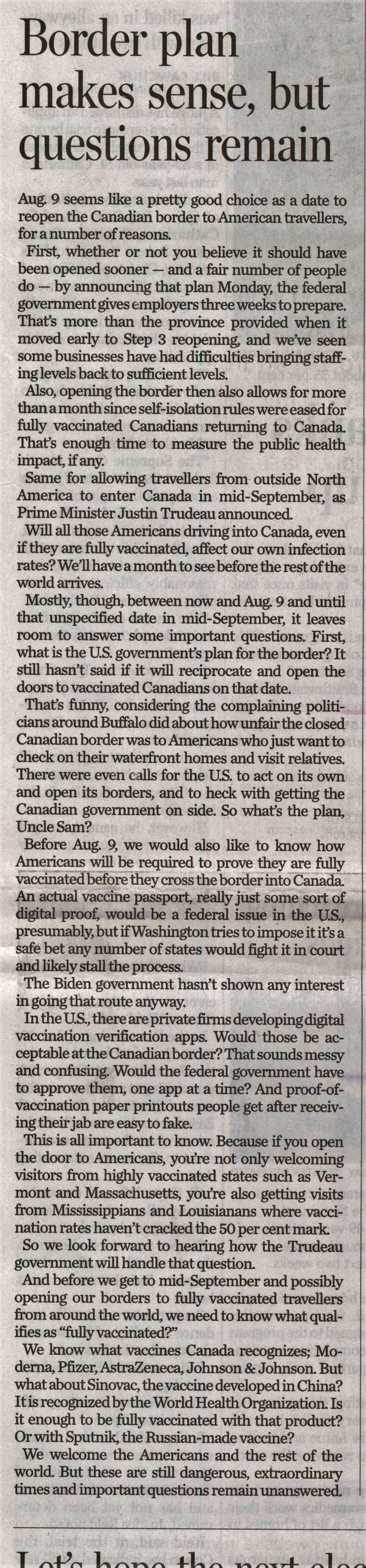 - Border plan makes sense, but questions remain