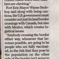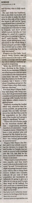 - Kevins, Kathleen / Moran, Greg / border travel / vaccinated citizens