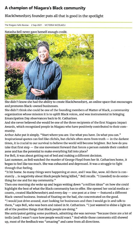 - A champion of Niagara's Black community : BlackOwned905 founder puts all that is good in the spotlight