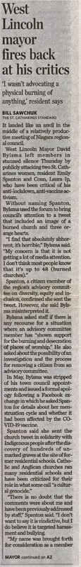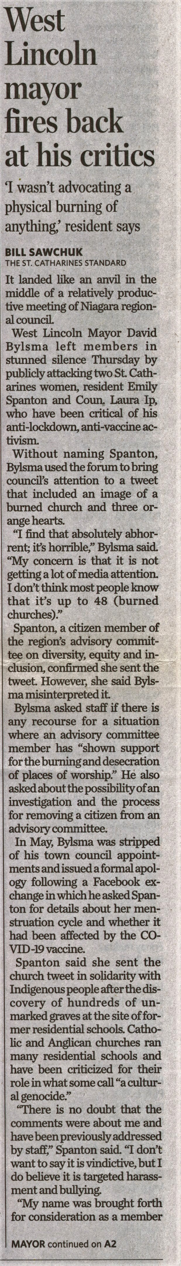 West Lincoln mayor fires back at his critics : 'I wasn't advocating a physical burning of anything' resident says