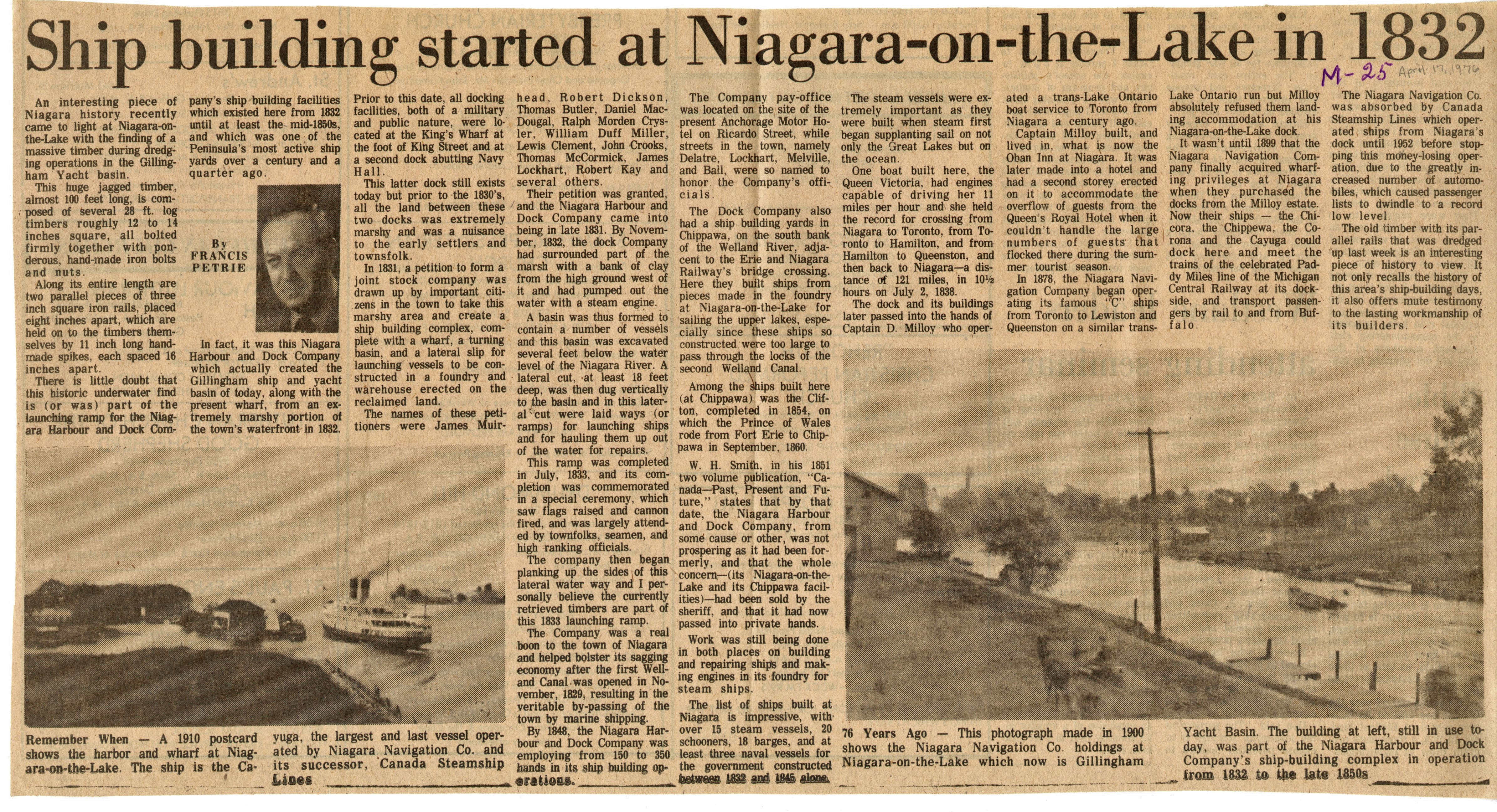 - Ship building started at Niagara-on-the-Lake in 1832