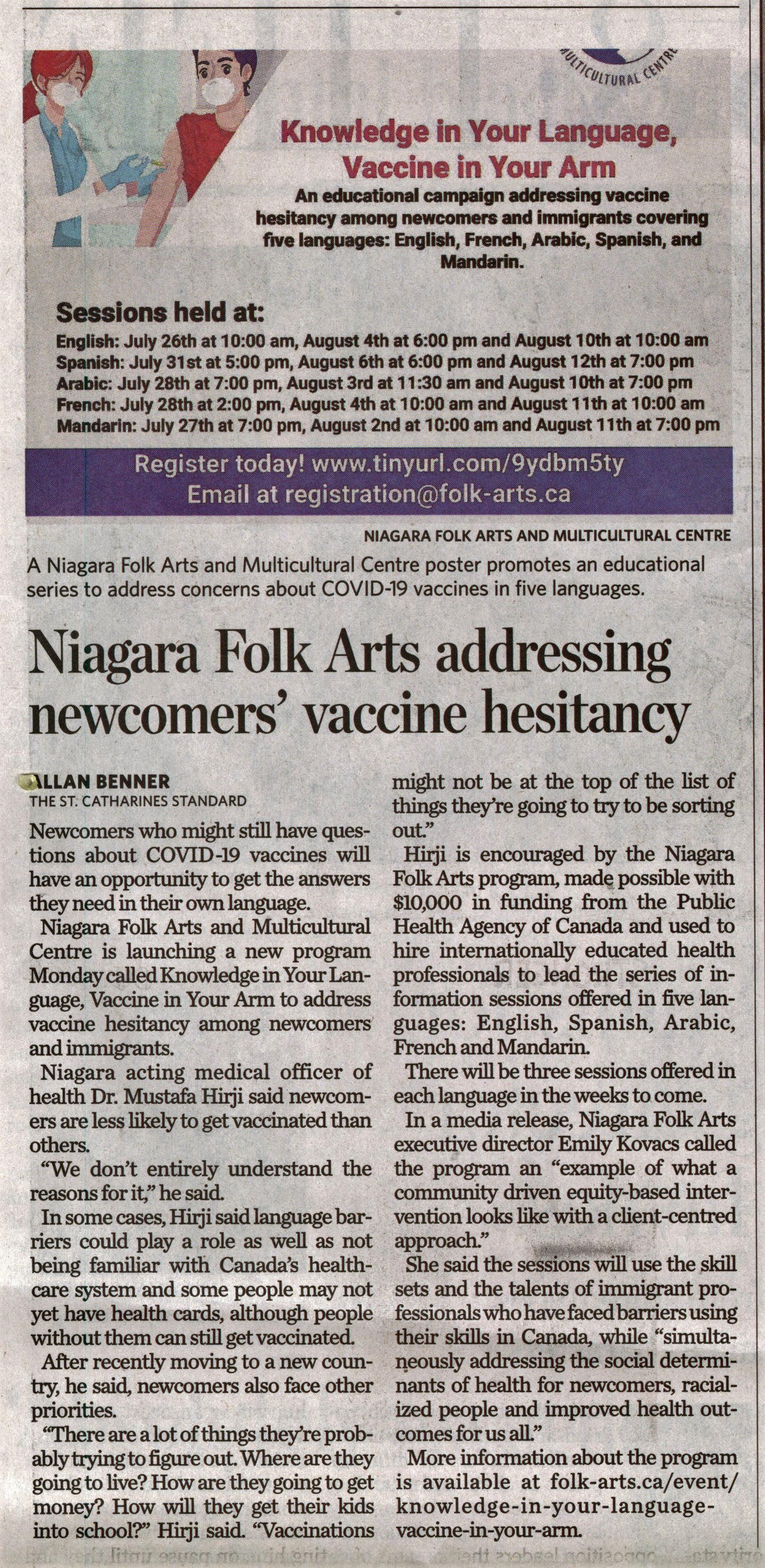 - Niagara Folk Arts addressing newcomers' vaccine hesitancy