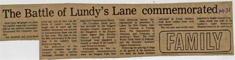 - The Battle of Lundy's Lane commemorated