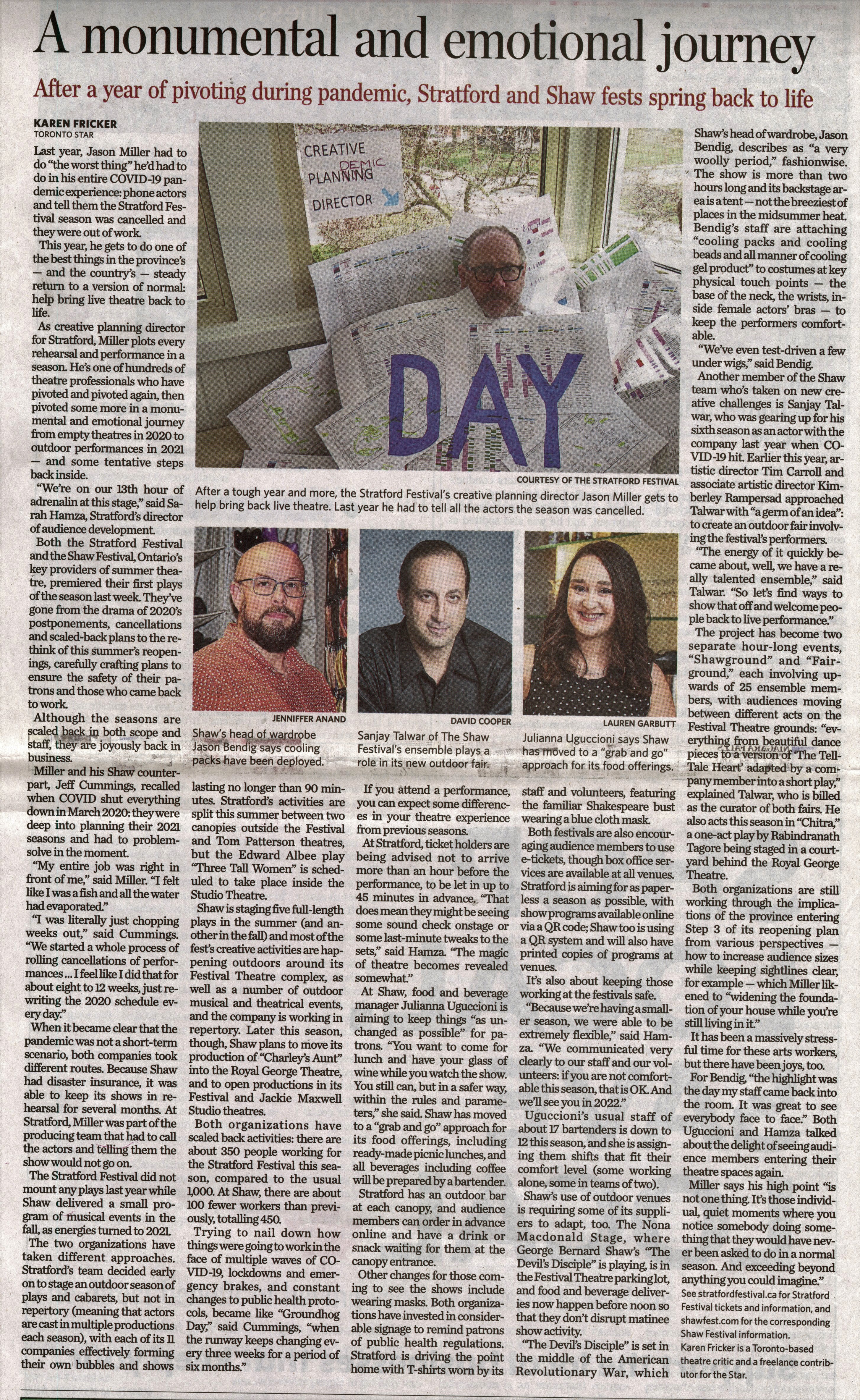 - A monumental and emotional journey : After a year of pivoting during pandemic, Stratford and Shaw fests spring back to life