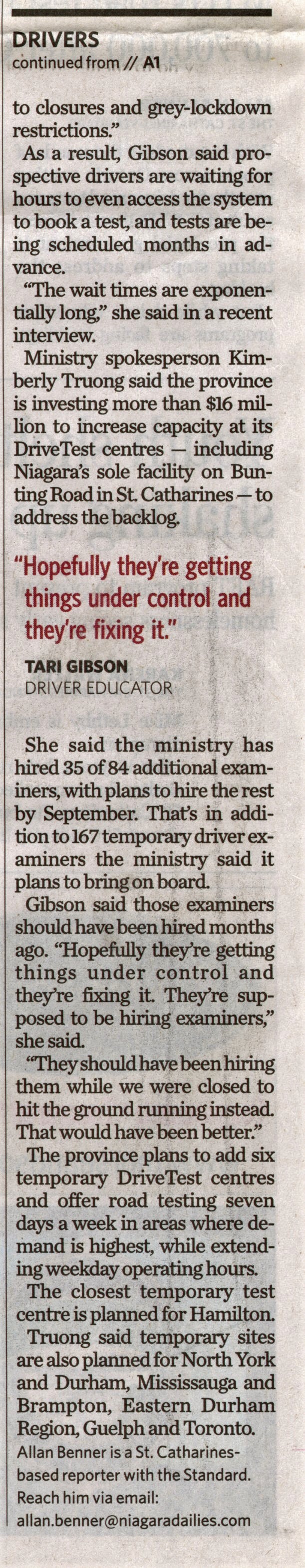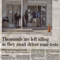 - Thousands are left idling as they await driver road tests : MTO's road test backlopg swells to 700,000 after COVID shutdown