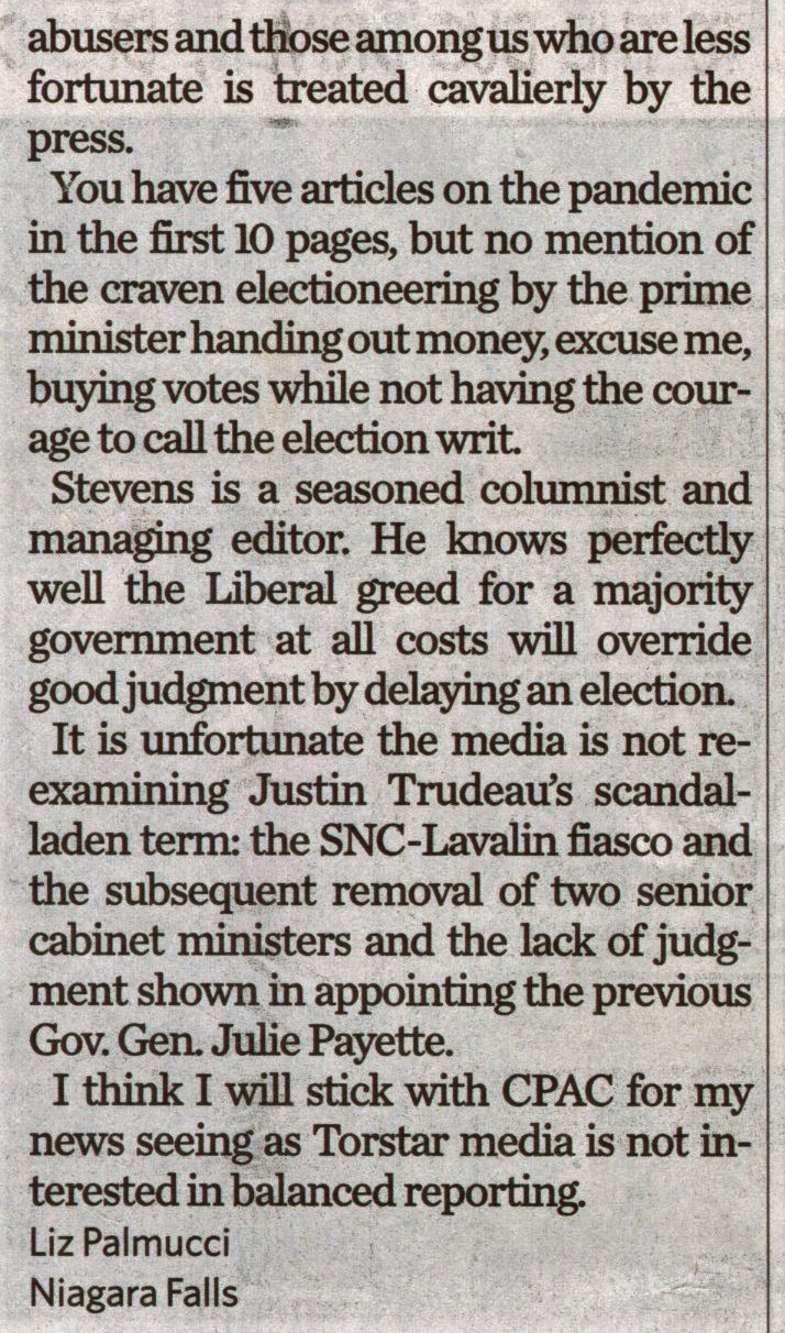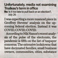 - Unfortunately, media not examining Trudeau's term in office : Re: Is it too late to pull back on an election?, July 26