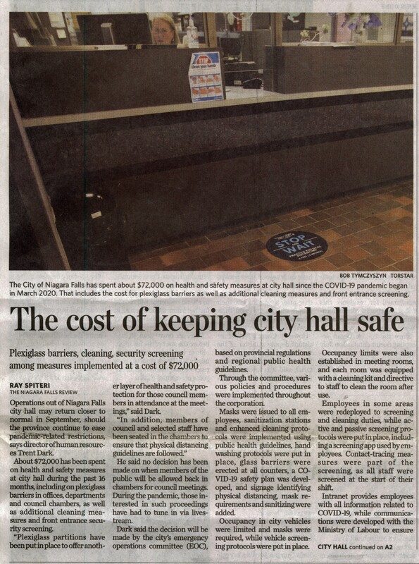 - The cost of keeping city hall safe : Plexiglass barriers, cleaning, security screening among measures implemented at a cost of $72,000