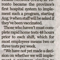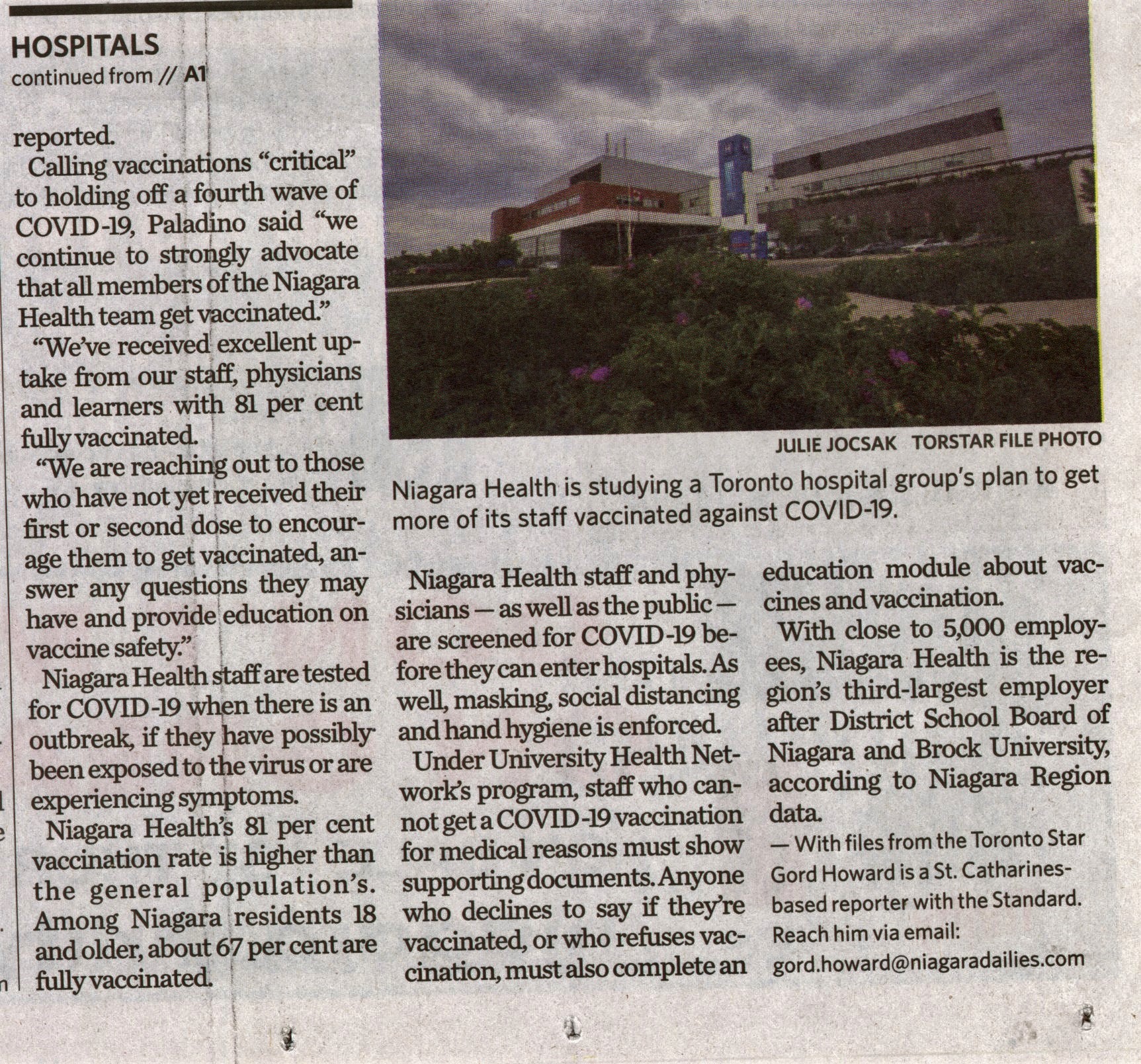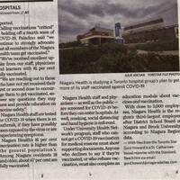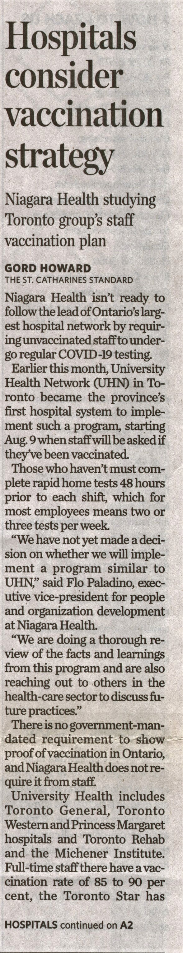 - Hospitals consider vaccination strategy : Niagara Health studying Toronto group's staff vaccination plan