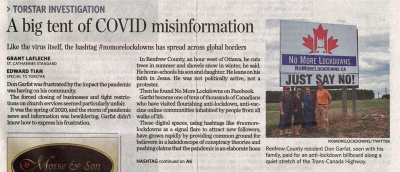 - A big tent of COVID misinformation : Like the virus itself, the hashtag #nomorelockdowns has spread across global borders