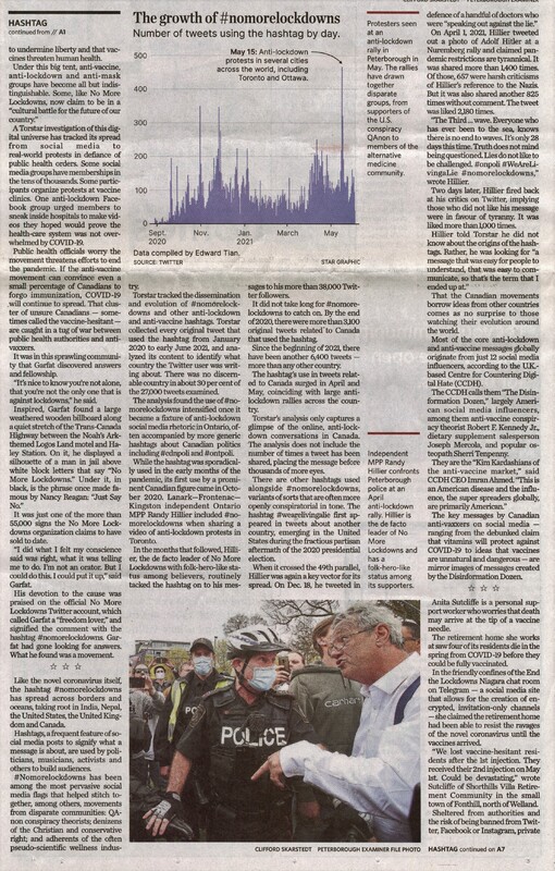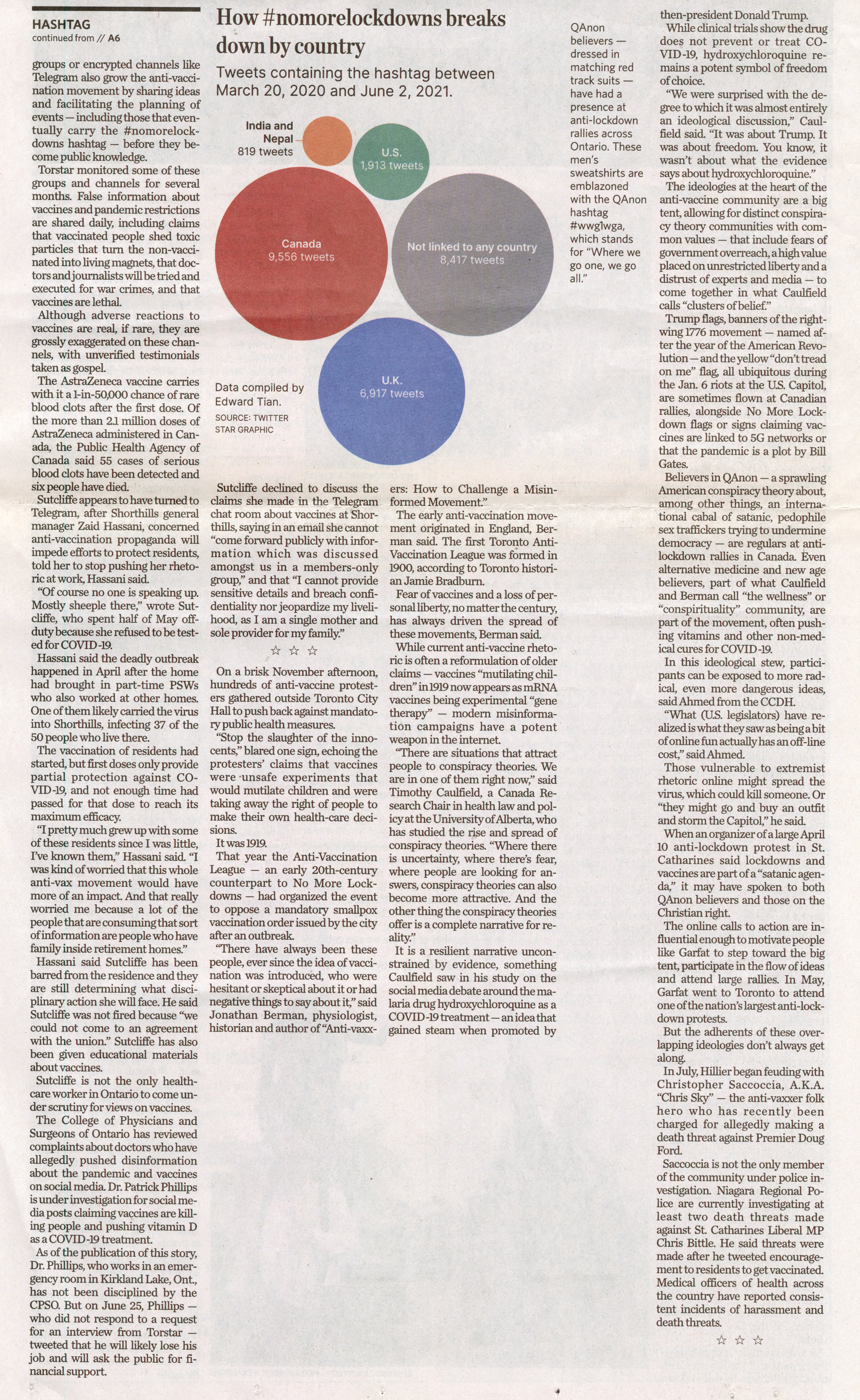 A big tent of COVID misinformation : Like the virus itself, the hashtag #nomorelockdowns has spread across global borders