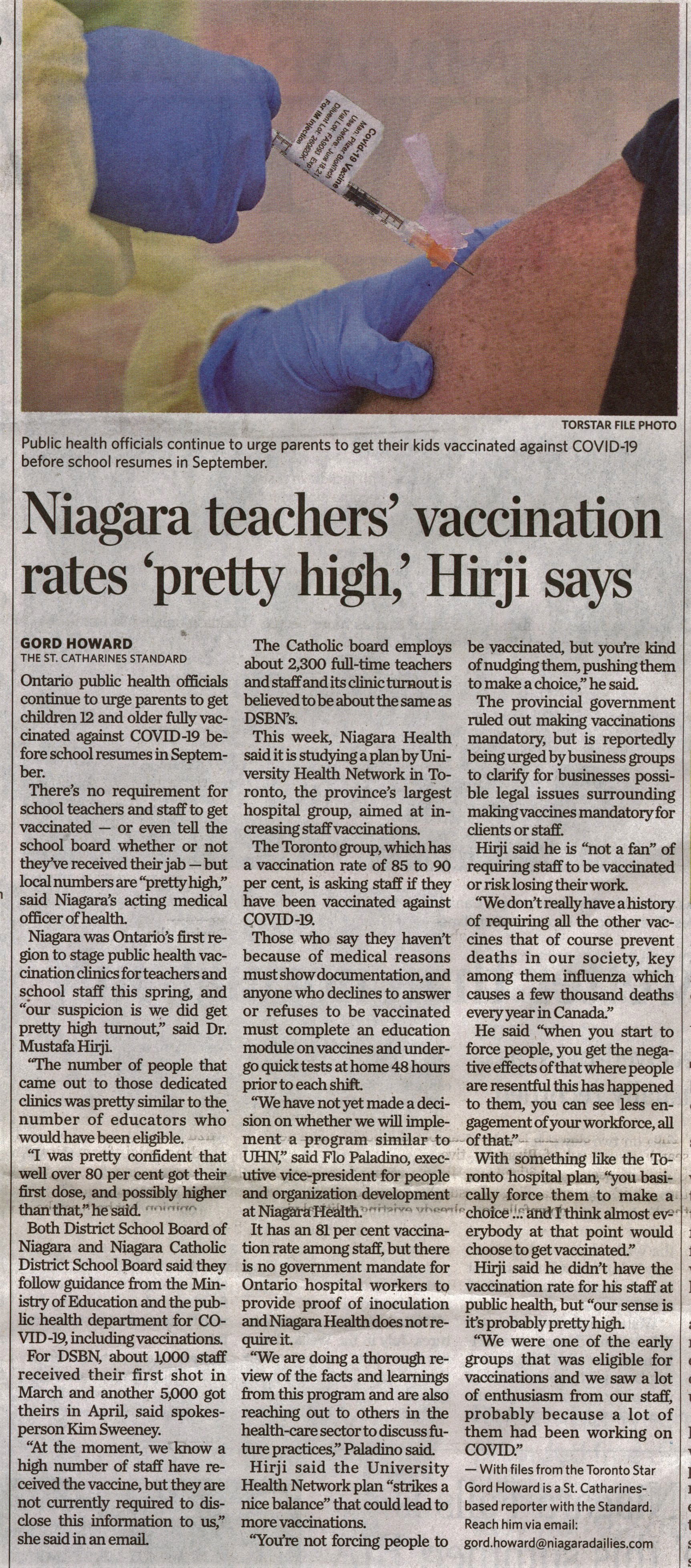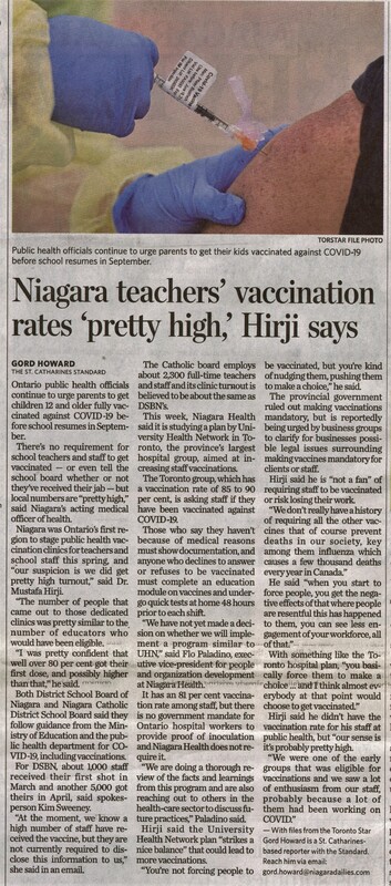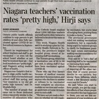 - Niagara teachers' vaccination rates 'pretty high,' Hirji says