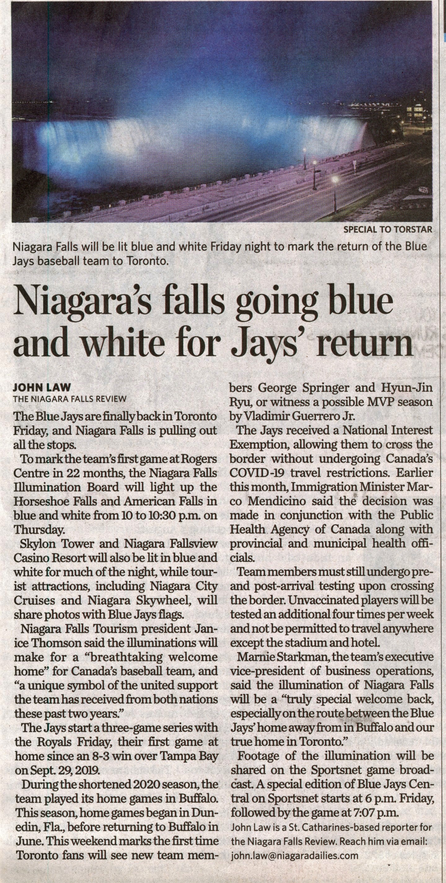 - Niagara's falls going blue and white for Jays' return