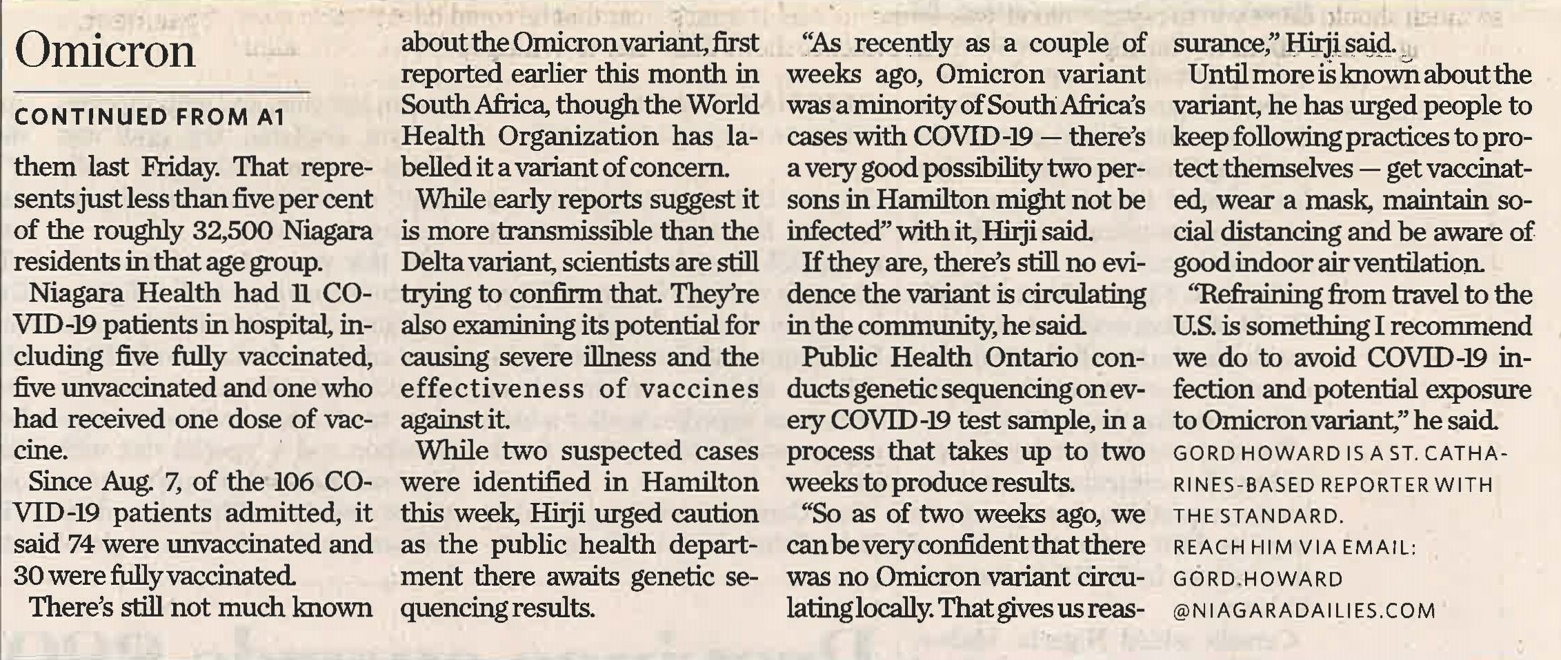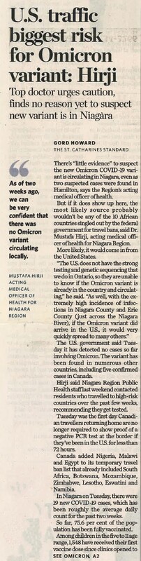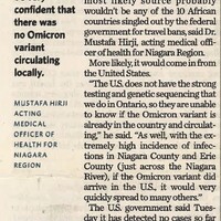 - COVID-19 pandemic / Hirji, Mustafa Dr. / Omicron variant / Niagara Region Public Health
