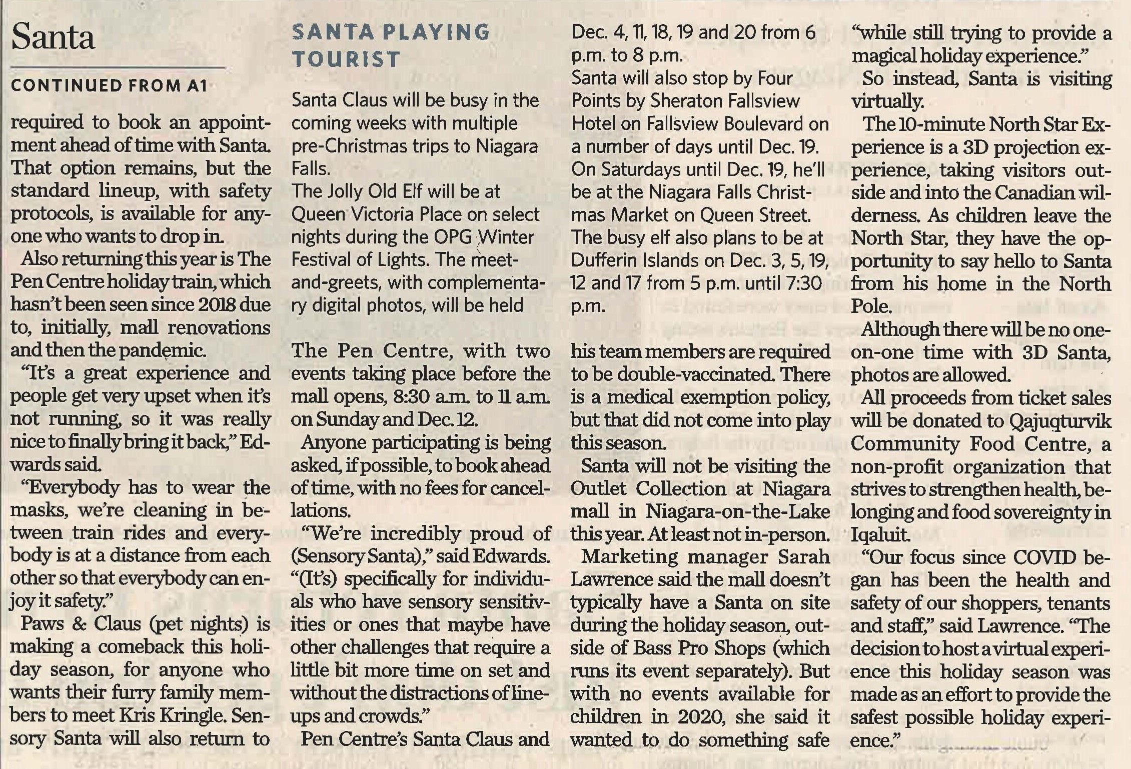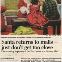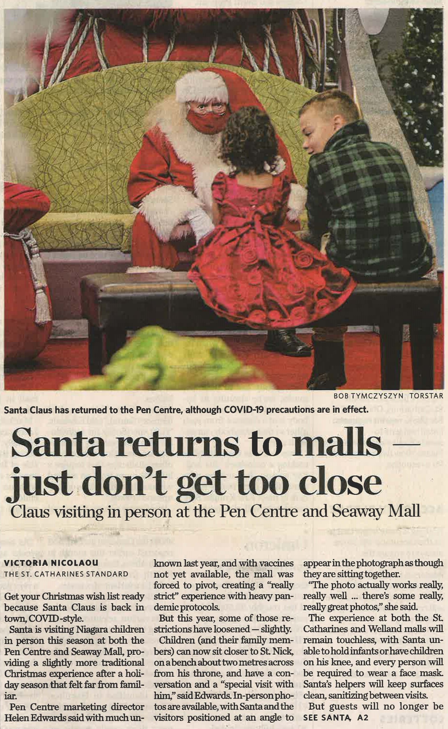 - Santa returns to malls - just don't get too close : Claus visiting in person at the Pen Centre and Seaway Mall