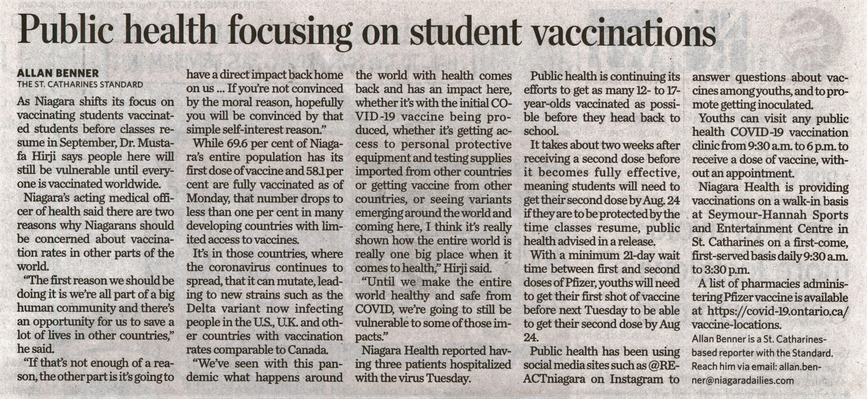 - Public health focusing on student vaccinations
