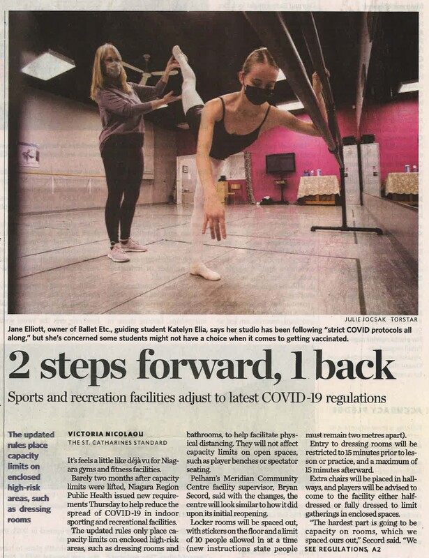 - Elliott, Jane / Ballet Etc. / COVID-19 pandemic / gyms/ fitness centres / Niagara Region Public Health / indoor sporting and recreational facilities