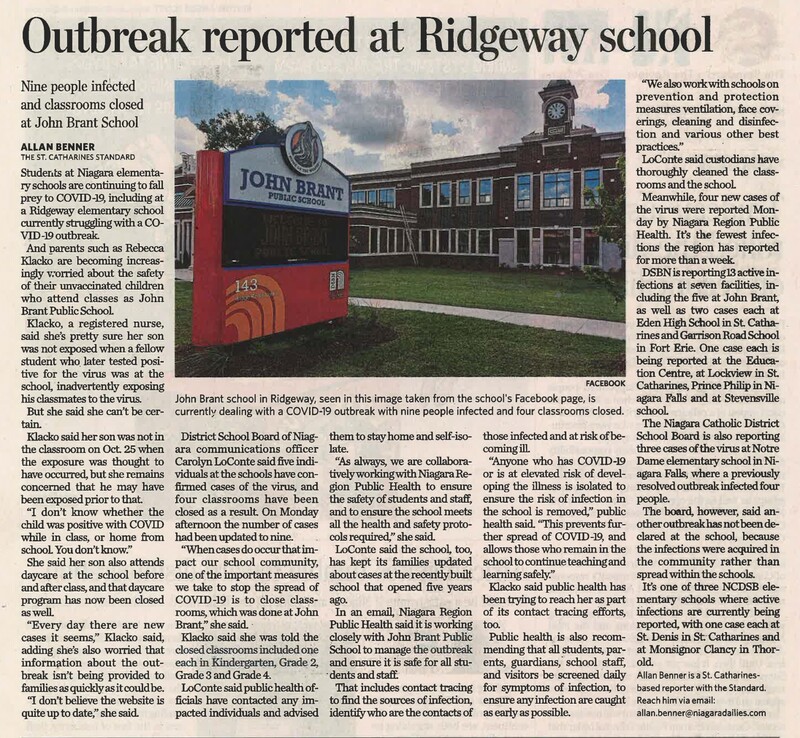 Outbreak reported at Ridgeway school : Nine people affected and classrooms closed at John Brant School