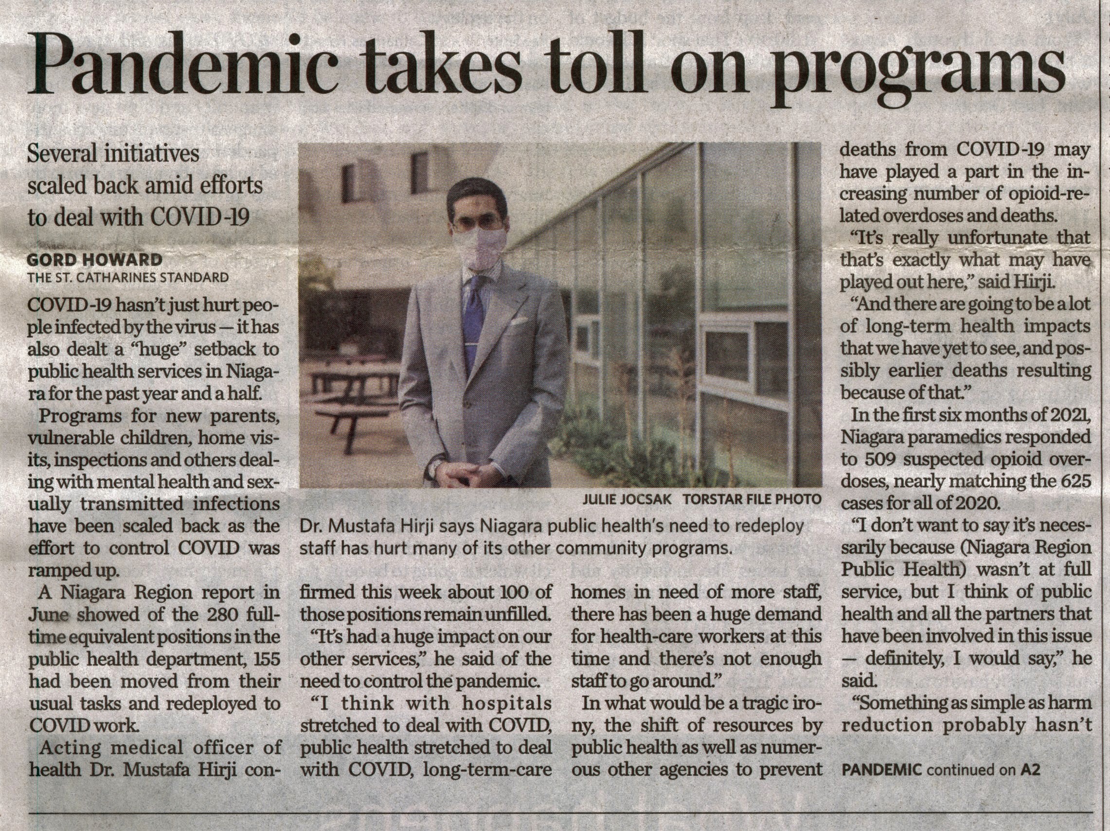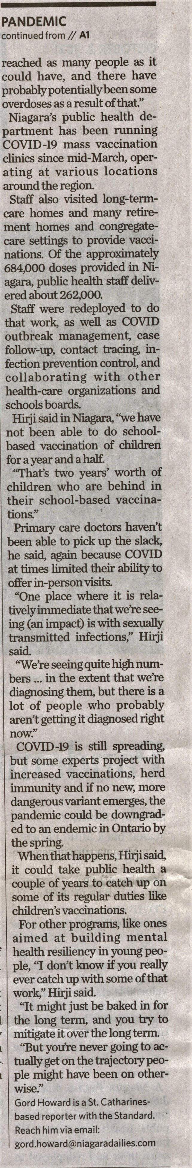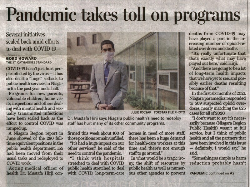 - Hirji, Mustafa Dr. / Niagara Region / public health services
