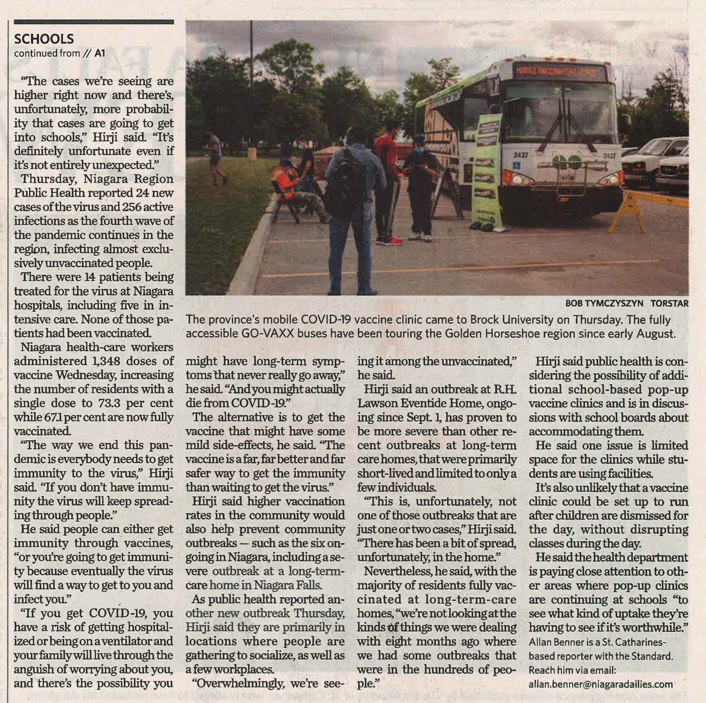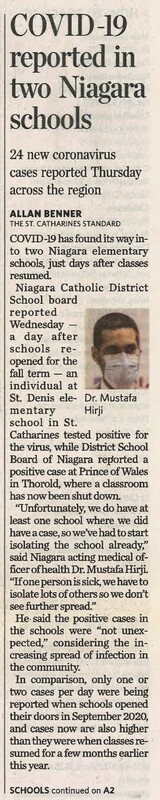 COVID-19 reported in two Niagara schools : 24 new coronavirus cases reported Thursday across the region