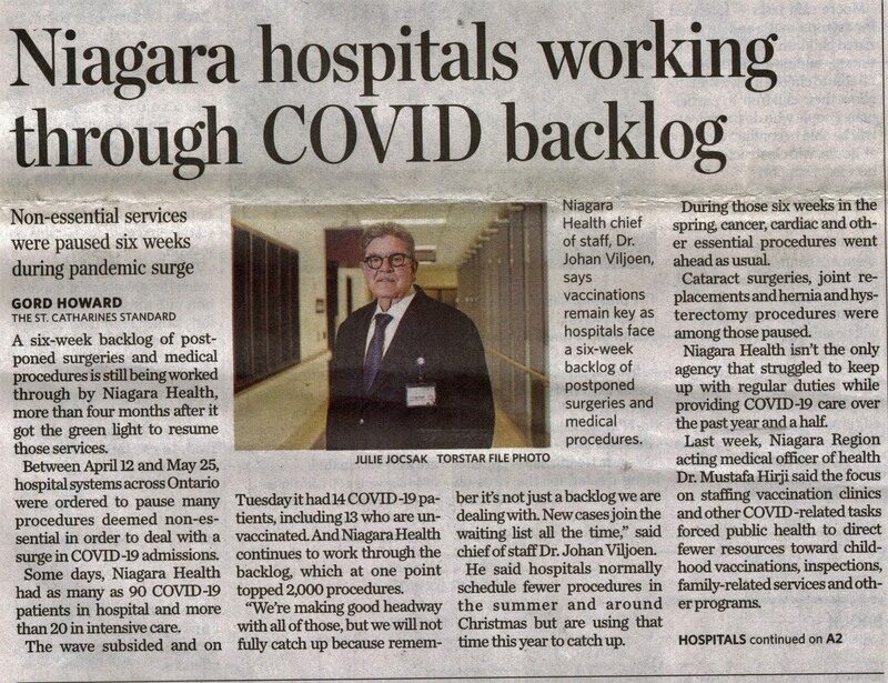 Niagara hospitals working through COVID backlog: Non-essential services were paused six weeks during pandemic surge