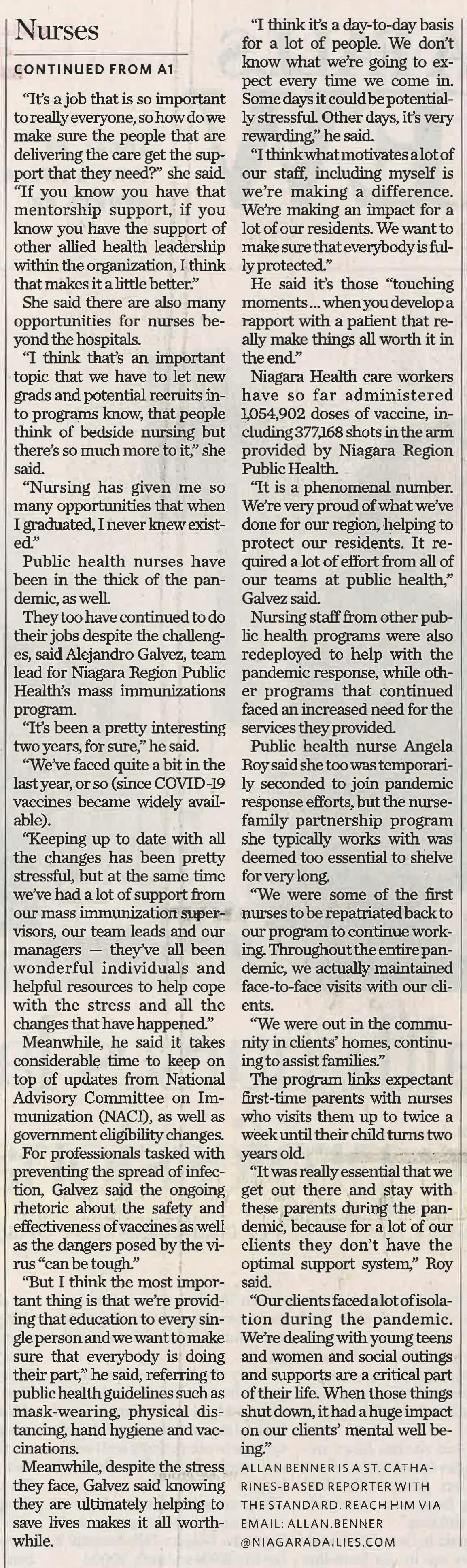 - Niagara Health nurses lauded for pandemic professionalism : health-care workers have put in long hours as COVID-19 challenges have dragged on in region
