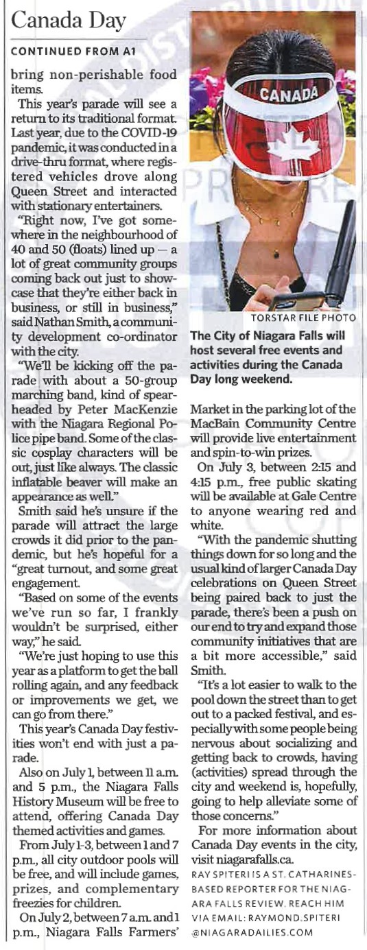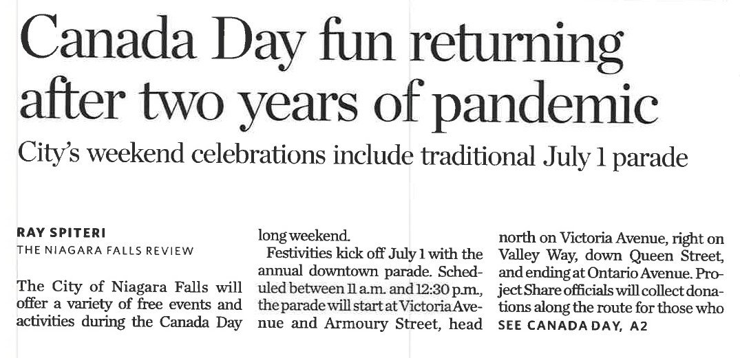 - Canada Day fun returning after two years of pandemic : City's weekend celebrations include traditional July 1 parade