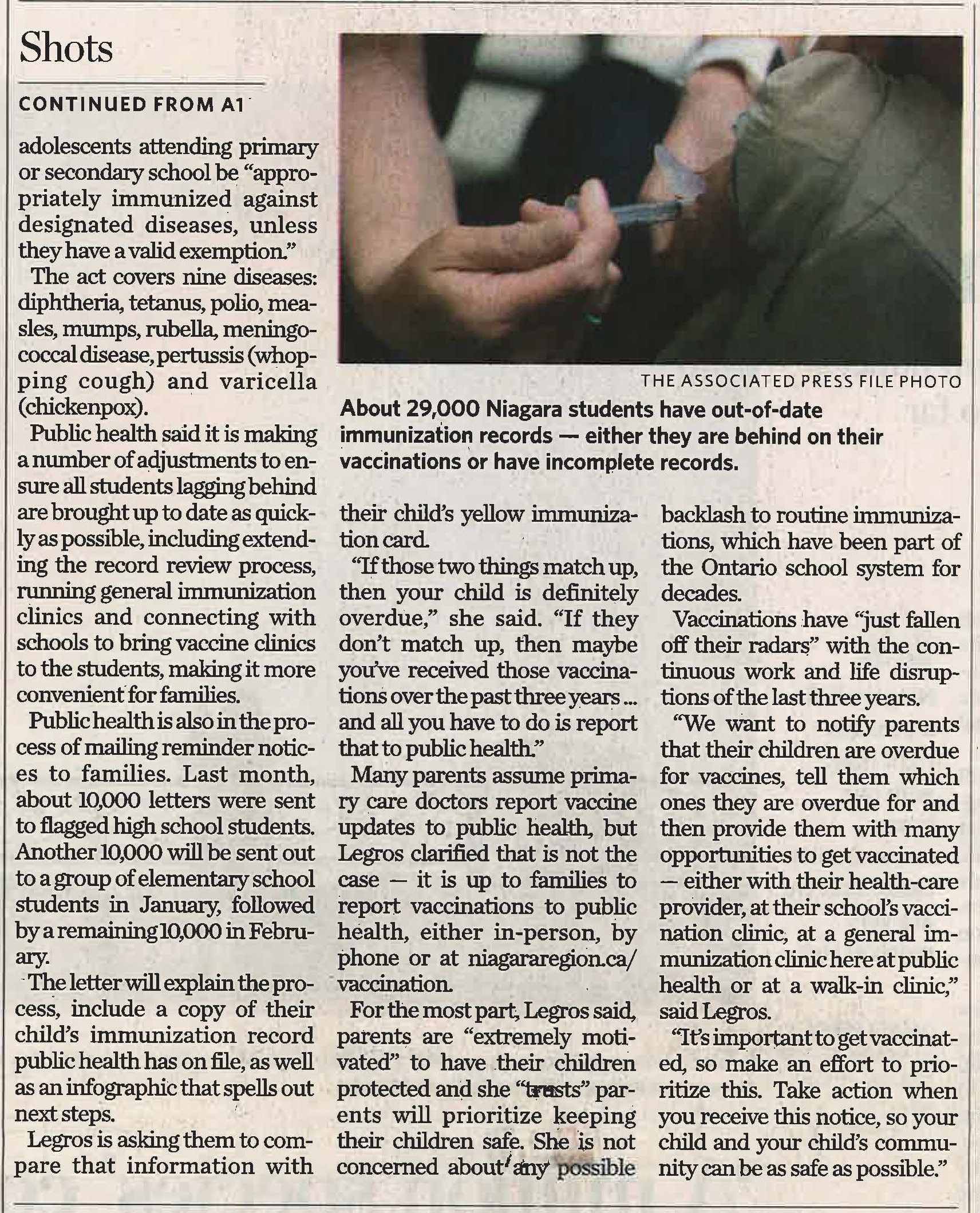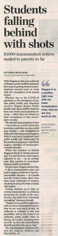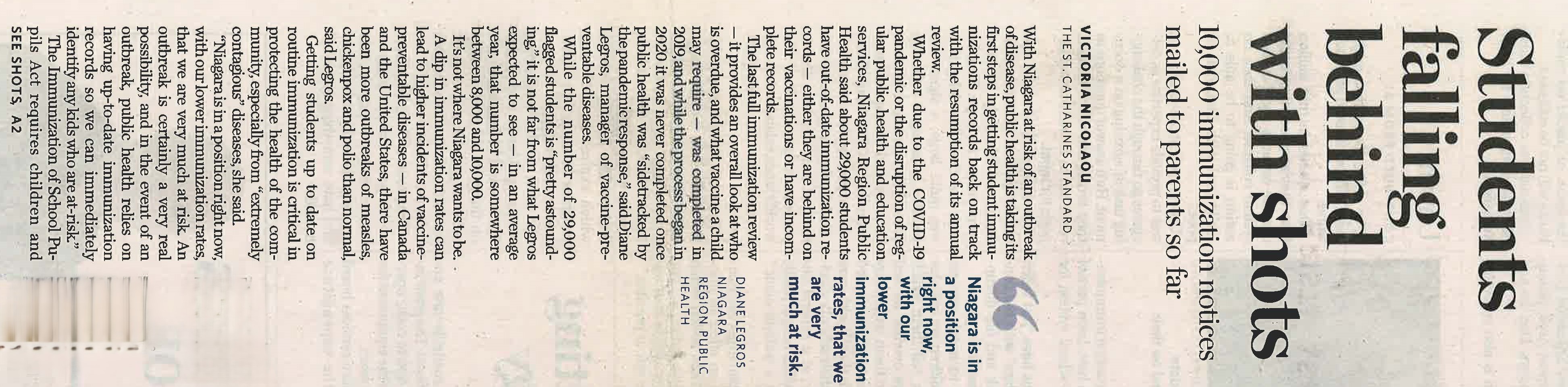 - Students falling behind with shots : 10,000 immunization notices mailed to parents so far