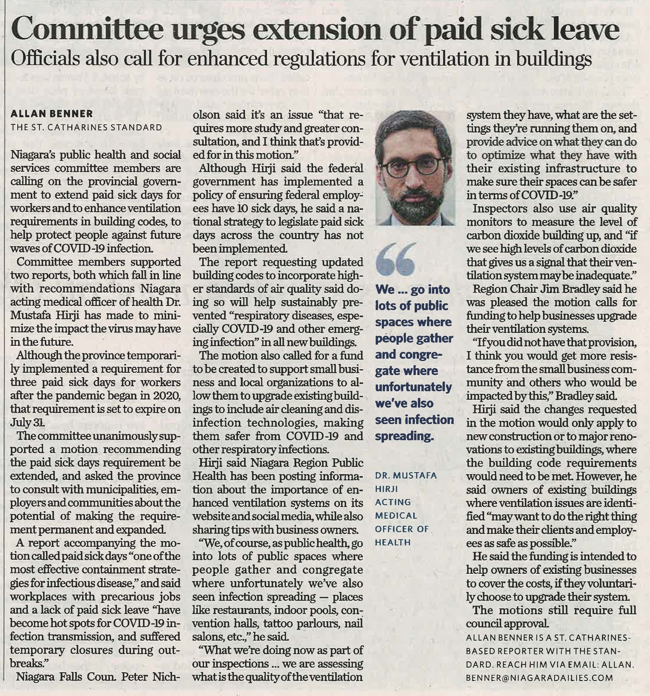 - Hirji, Mustafa, Dr. / Nicholson, Peter / Bradley, Jim / Niagara Public Health