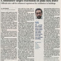Committee urges extension of paid sick leave : Officials also call for enhanced regulations for ventilation in buildings