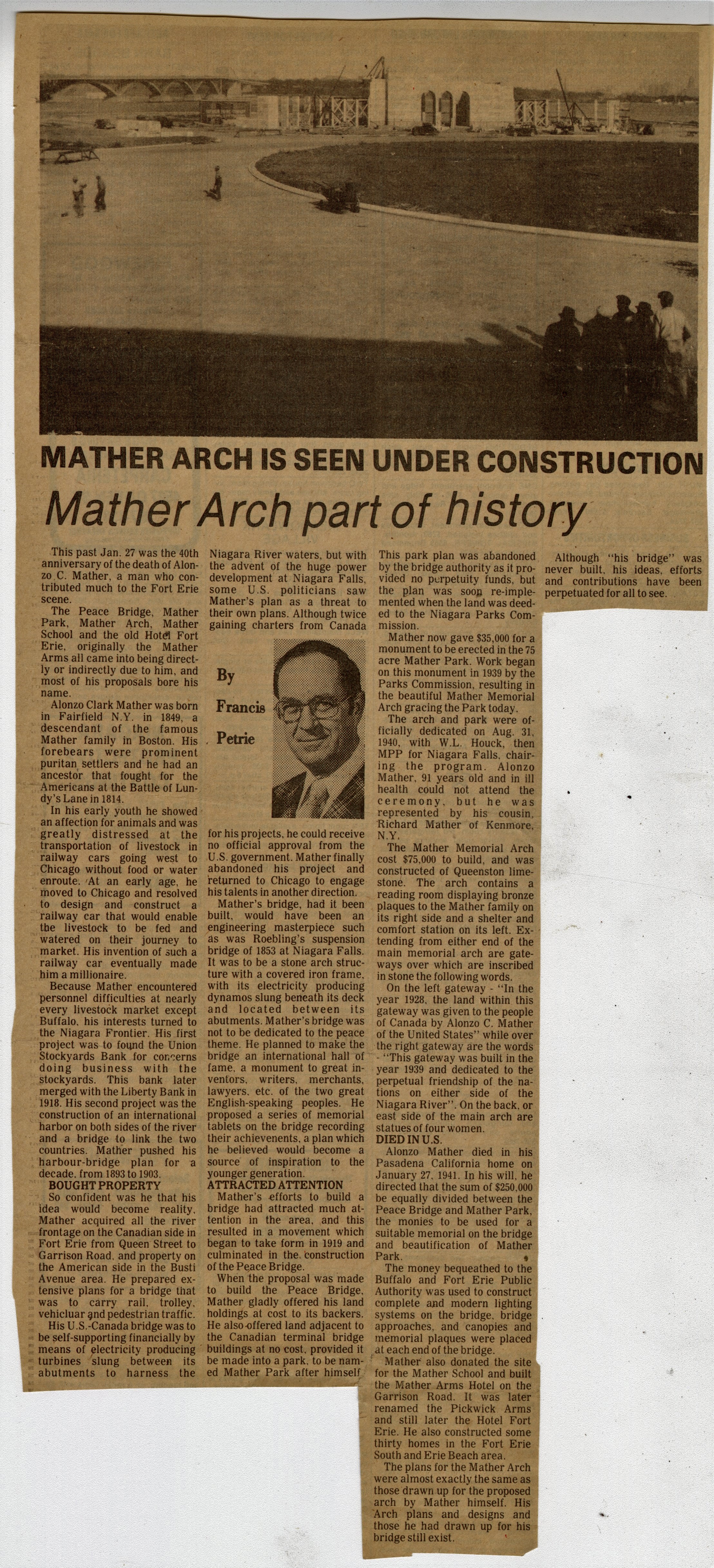 - Mather Arch is seen under construction : Mather Arch part of history (no date)