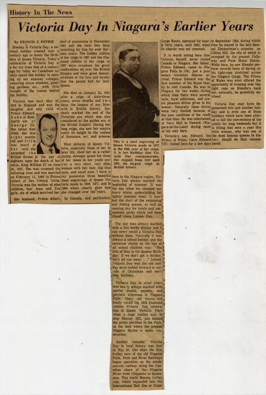 - History In The News : Victoria Day In Niagara's Earlier Years (no date)