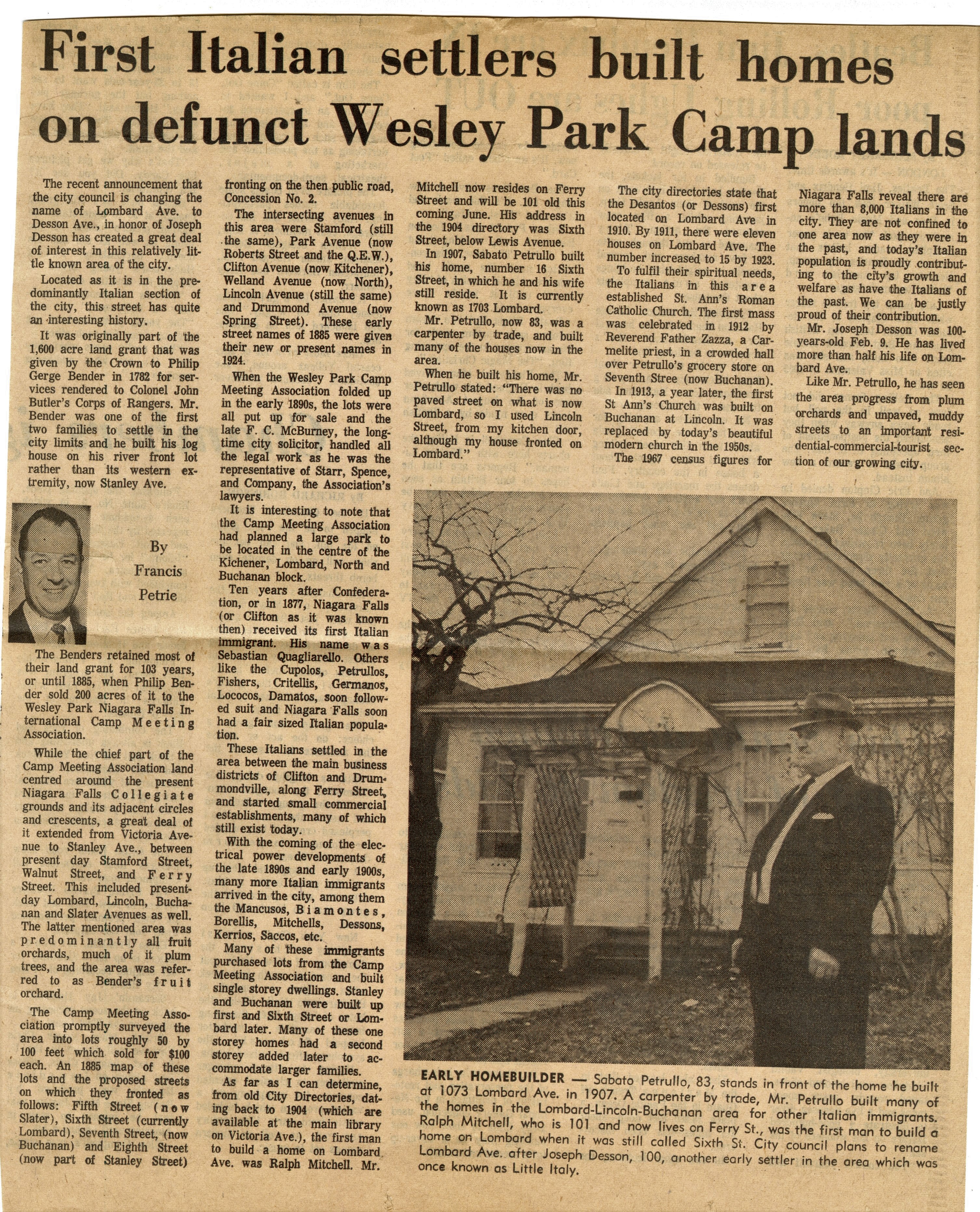 Petrullo, Sabata / Lombard Avenue / Mitchell, Ralph / Desson, Joe / Desson Avenue / Italian community