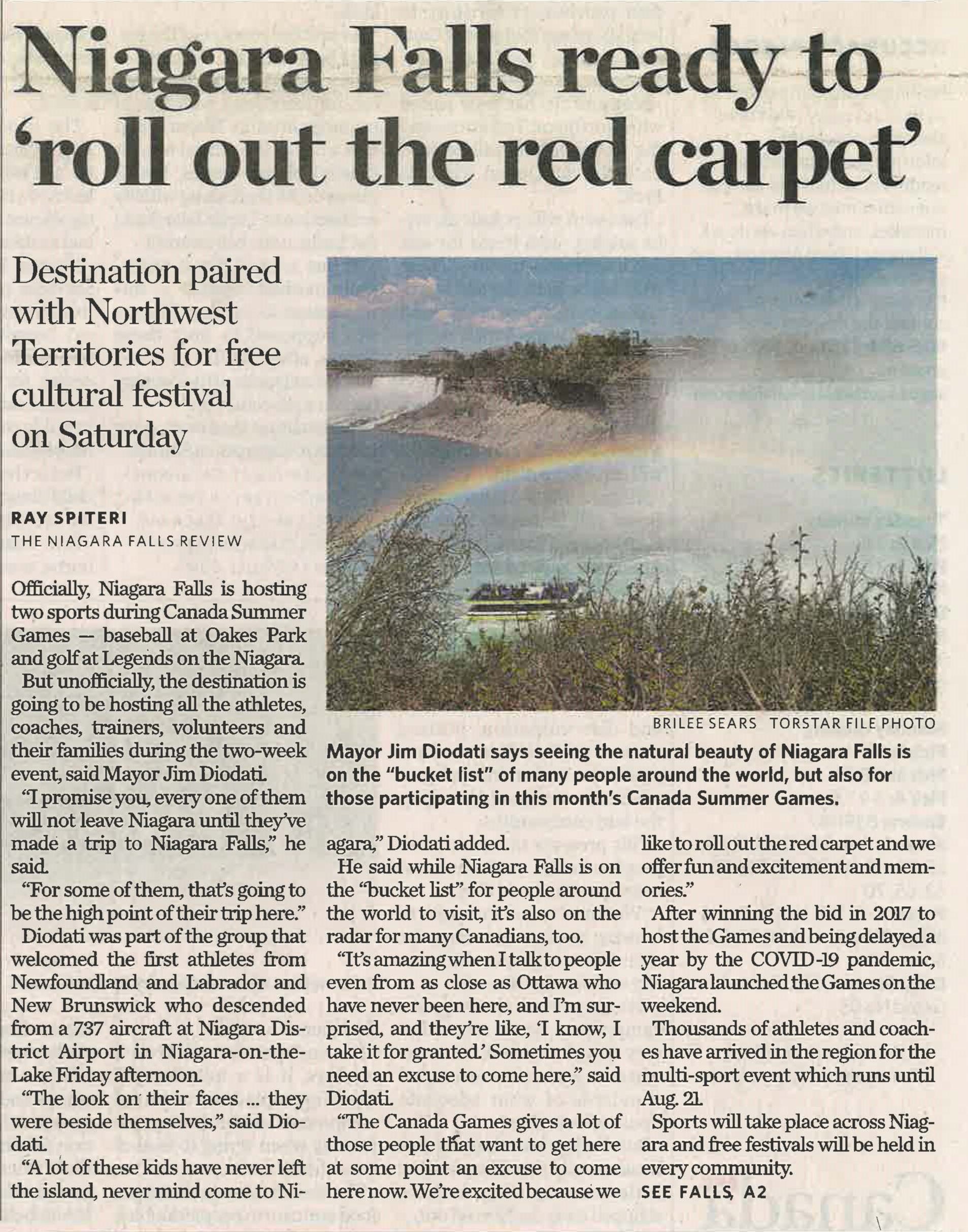 - Niagara Falls ready to 'roll out the red carpet' : destination paired with Northwest Territories for free cultural festival on Saturday