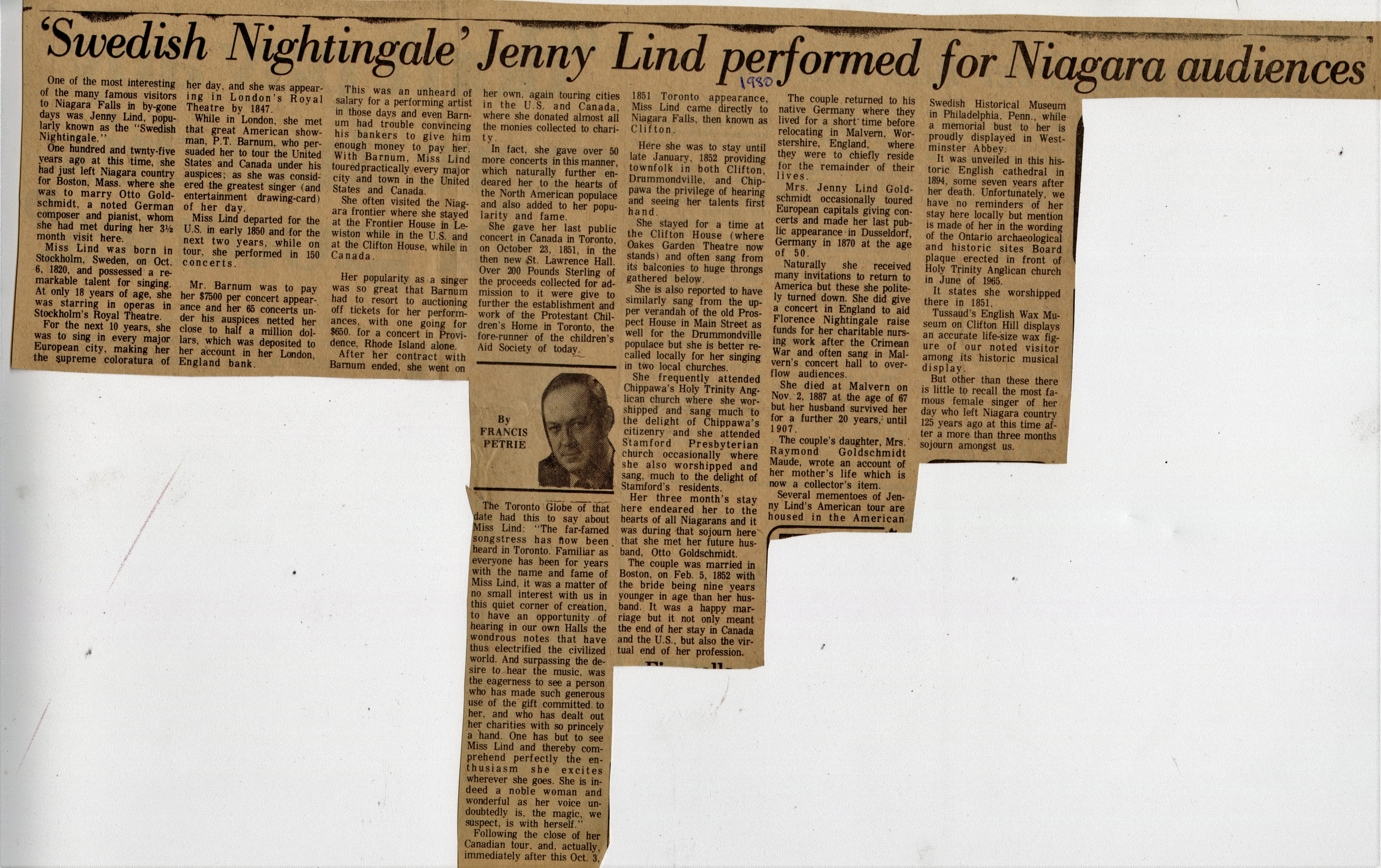 - 'Swedish Nightingale' Jenny Lind performed for Niagara audiences