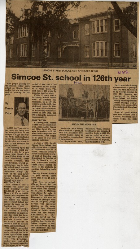 - Simcoe St. school in 126th year