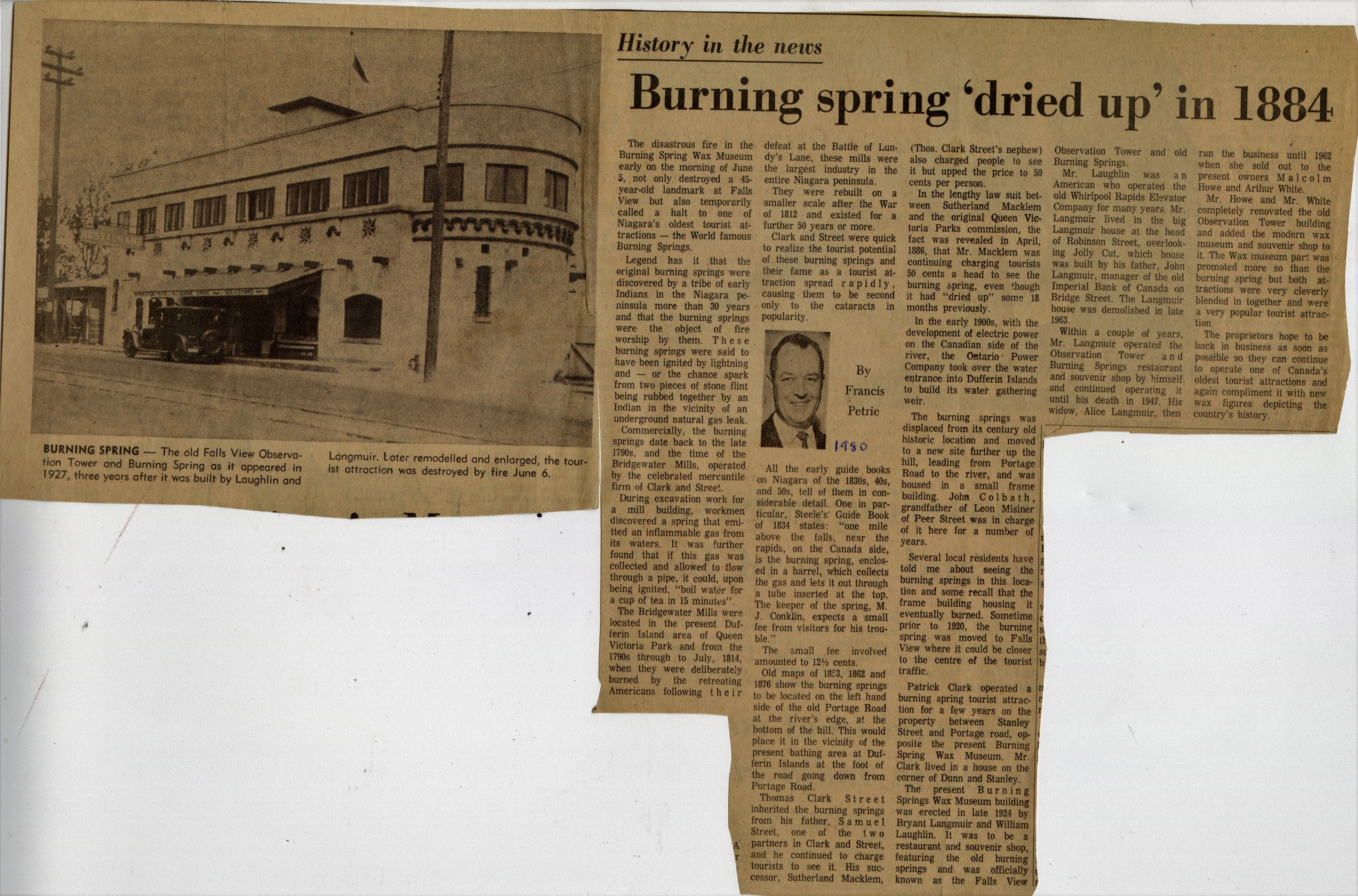 History in the news : Burning spring 'dried up' in 1884
