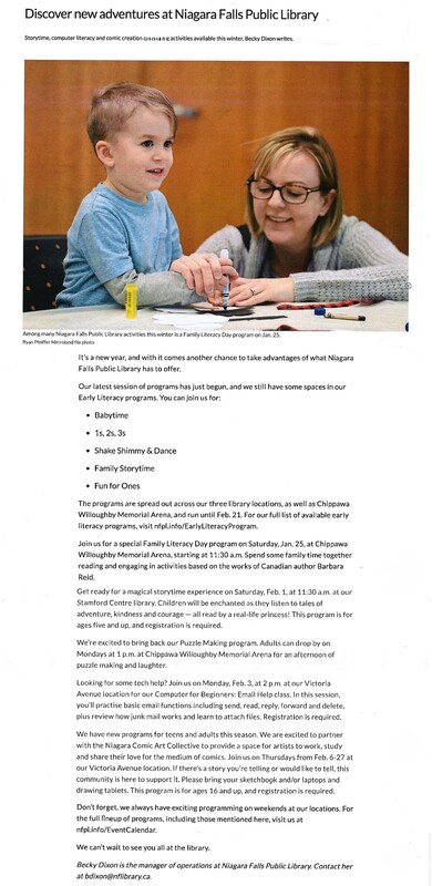 - Discover new adventures at Niagara Falls Public Library : Storytime, computer literacy and comic creation are among activities this winter