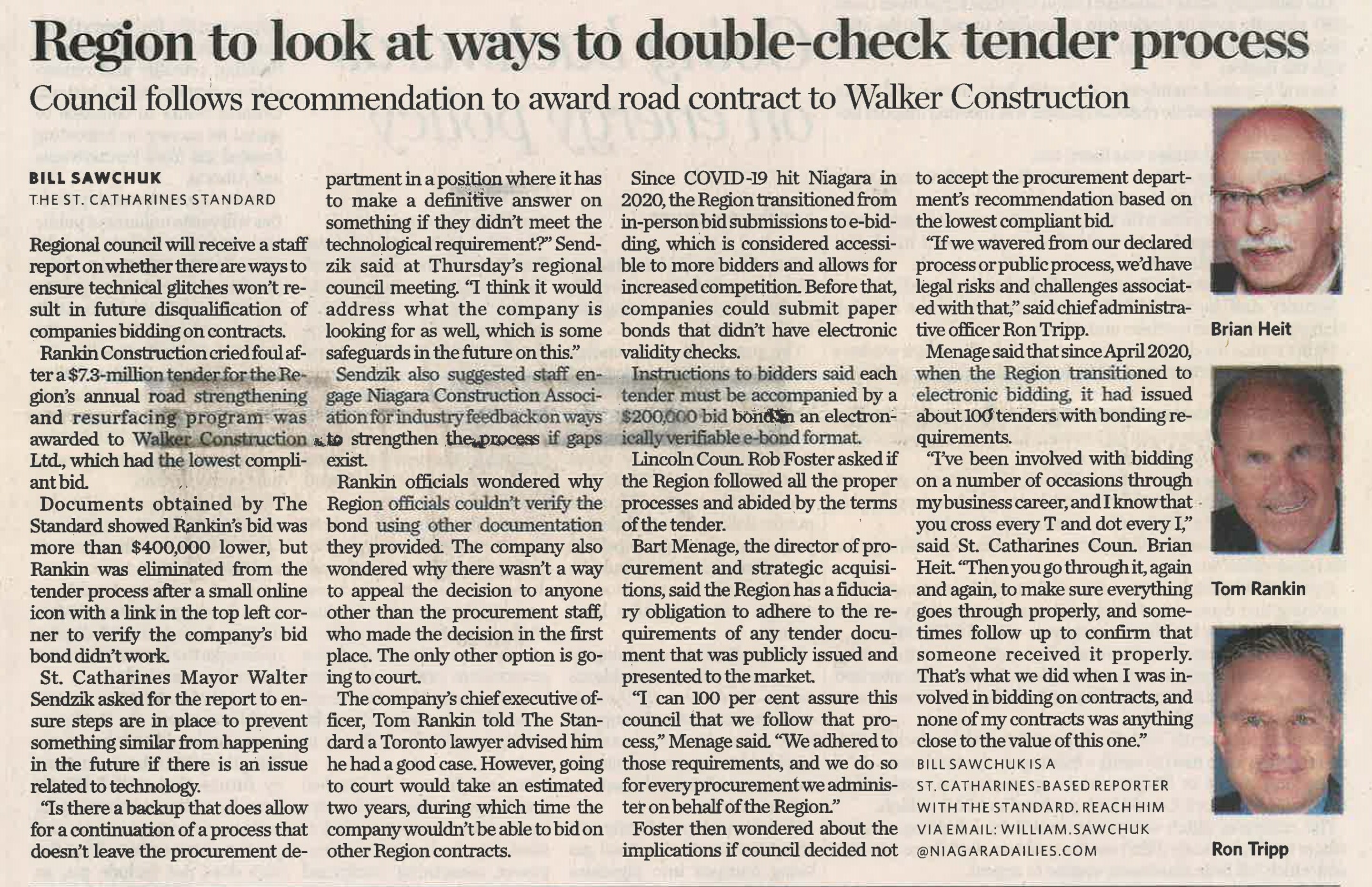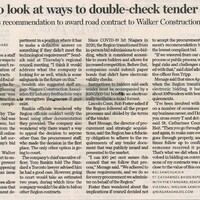 Region to look at ways to double-check tender process : council follows recommendation to award road contract to Walker Construction