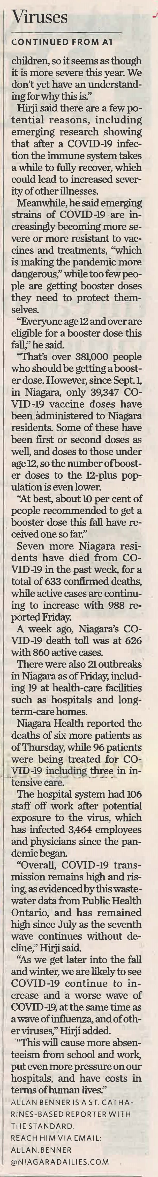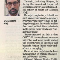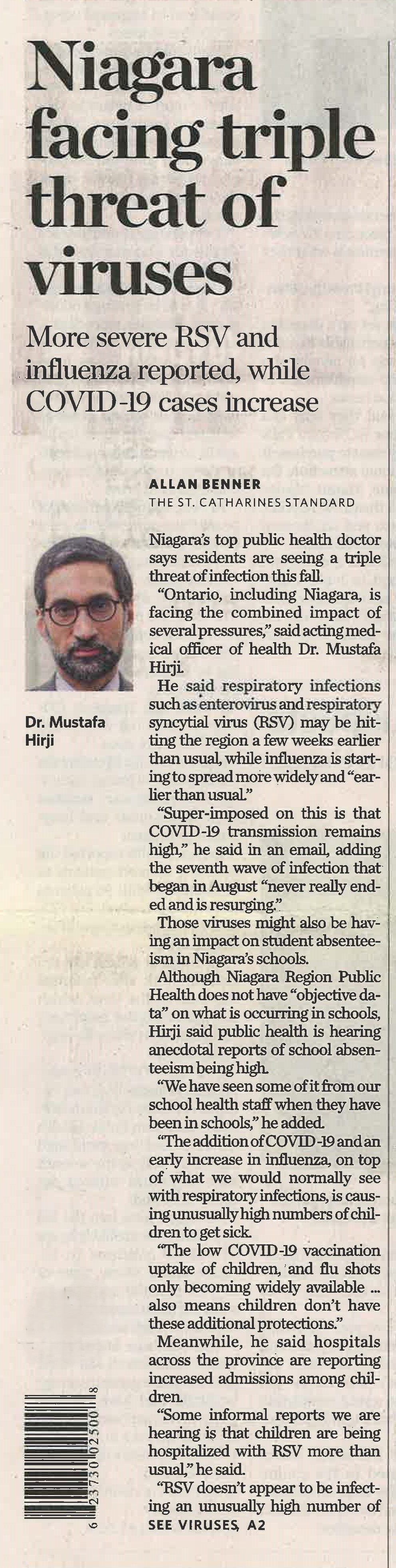 - Niagara facing triple threat of viruses : More severe RSV and influenza reported, while COVID-19 cases increase